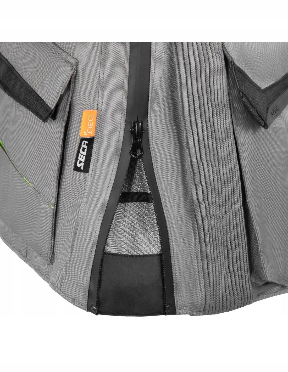 - спереди: 2 большие вентиляционные панели на молнии на груди
