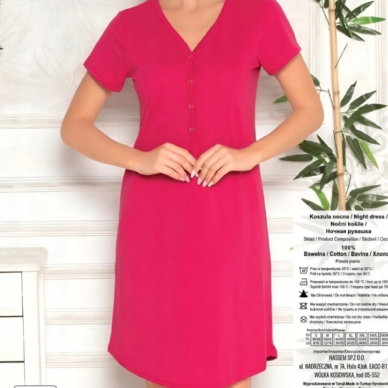 Ночная рубашка принадлежит к коллекции женского хлопка с короткими рукавами , а его обычная линия вызывает, что он соответствует различным типам силуэтов. Короткий рукав добавляет легкость и делает его идеальным для более теплых ночей.