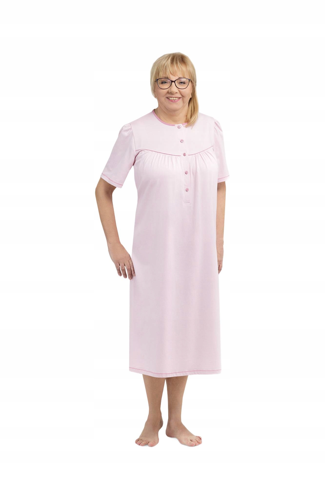 Женская ночная рубашка M розовый длинный короткий рукав хлопок для моей матери