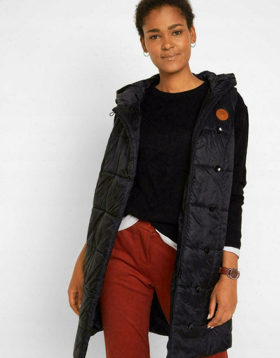 ЖЕНСКИЙ ОСЕННИЙ СТЕГАНЫЙ ЖИЛЕТ С КАПЮШОНОМ, ЧЕРНЫЙ – практичное и модное предложение для переходных дней. Стеганый материал обеспечивает легкость и защиту от холода, а капюшон дополнительно защищает от ветра и дождя. Классический черный цвет позволяет жилету хорошо сочетаться со многими стилями - от спортивного до повседневного.