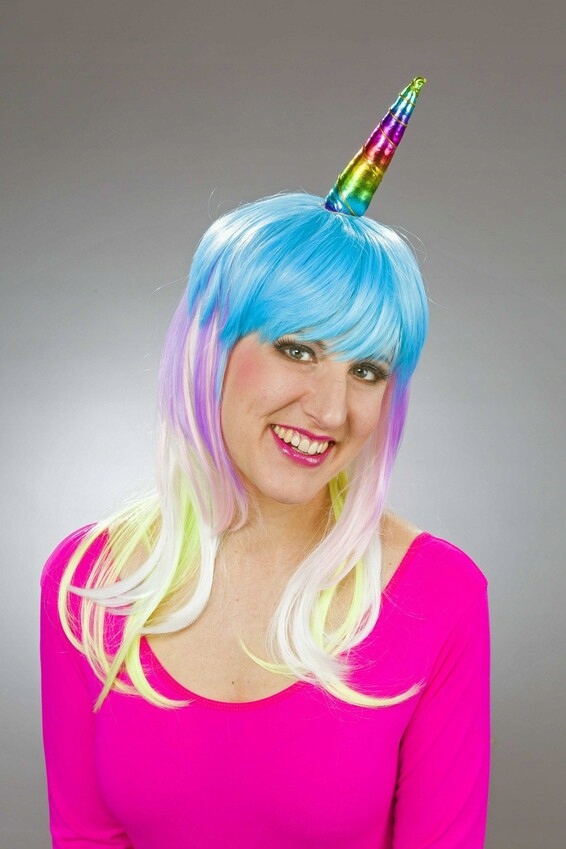 Женский парик единорога с рогом – идеальный аксессуар, который превратит любой костюм в волшебную фигурку. Материал: 96 % полиэтилентерефталат, 4 % полиэстер.