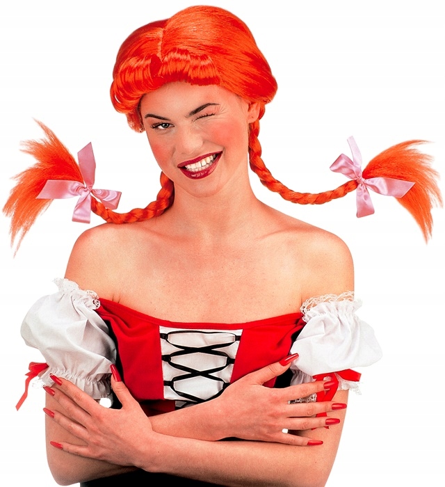 Женский парик в стиле фигурки Пипи Длинные Колготки. Уникальное дополнение к костюму Длинного чулка Пипи для карнавальной вечеринки. 100% синтетические волосы.