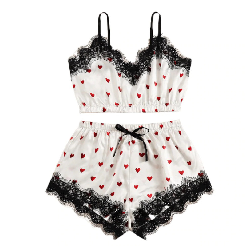❣ Пижамы сделаны с вниманием к деталям, кружевная рубашка, шорты украшены тонким черным кружевом.