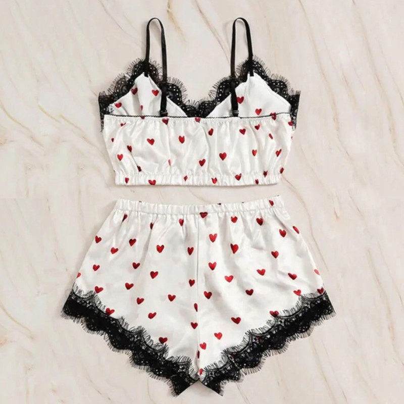 СЕНСОРНАЯ АТЛАСНАЯ ПИЖА-ДВУШКА, УКРАШЕННАЯ ЧЕРНЫМ КРУЖЕВОМ