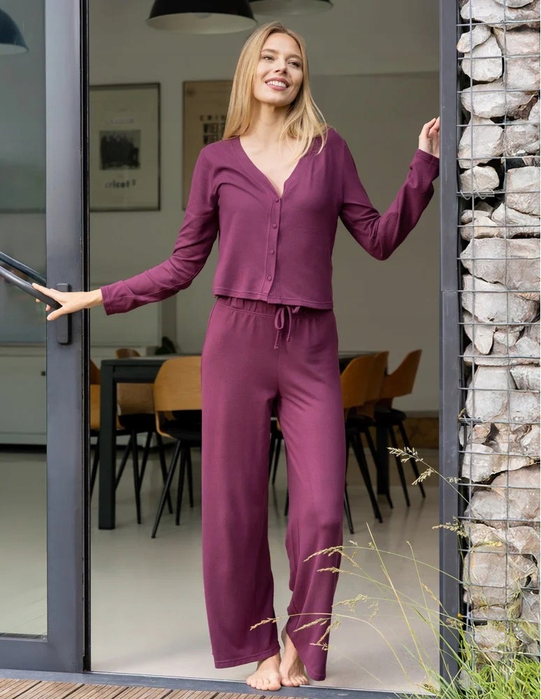 ЖЕНСКАЯ ПИЖАМА Широкие брюки на молнии с длинными рукавами Moraj Purple - M