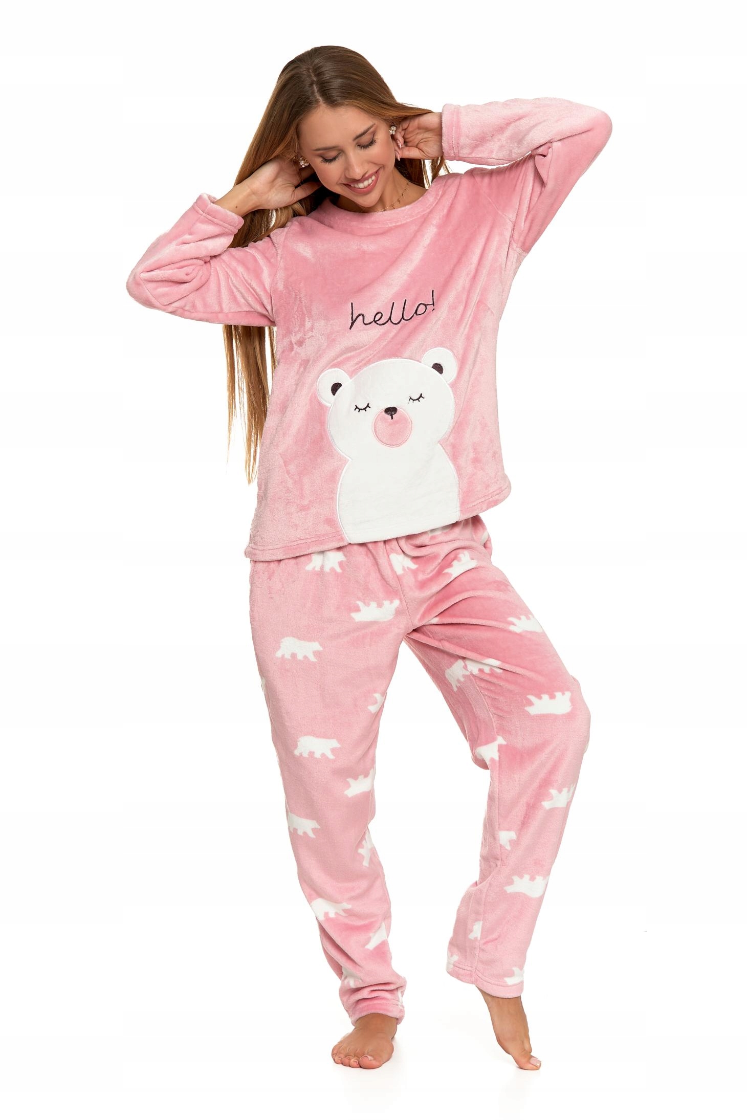 Женская пижама из теплого флиса, удобная с длинными рукавами, очаровательная BEAR Pink MORAJ L