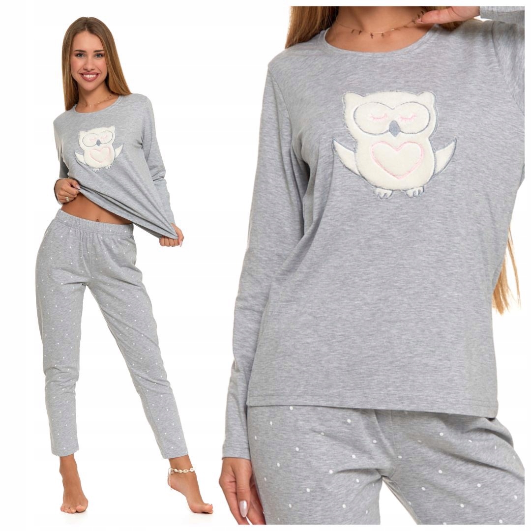 ЖЕНСКАЯ ПИЖАМА С ДЛИННЫМ РУКАВОМ MORAJ OWL КРУГЛЫЙ ШЕИ ТЕПЛЫЙ СЕРЫЙ XL