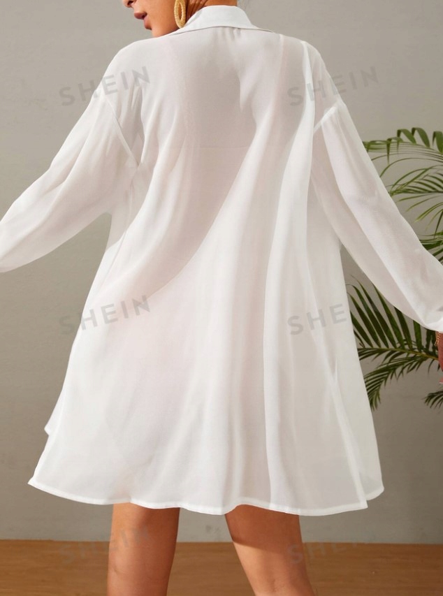 ПЛЯЖНАЯ РУБАШКА ЖЕНСКАЯ, БЕЛАЯ, ПРОСТАЯ, ОДНОРОДНАЯ