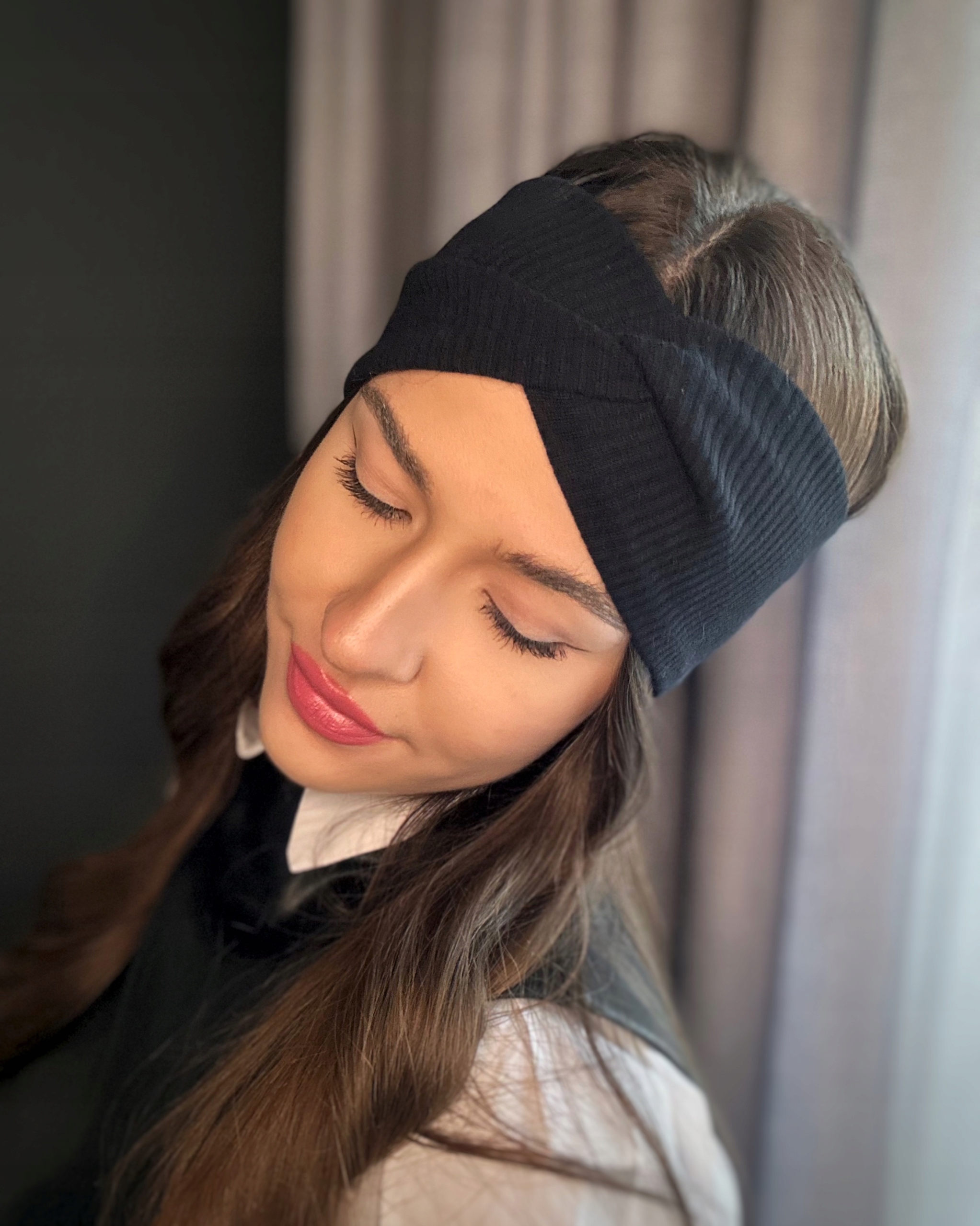 ПОВЯЗКА НА ГОЛОВЬ ЖЕНСКАЯ, ТОНКАЯ, ЛЕГКАЯ, УДОБНАЯ, РЕБРИСТАЯ, ЧЕРНАЯ 2916