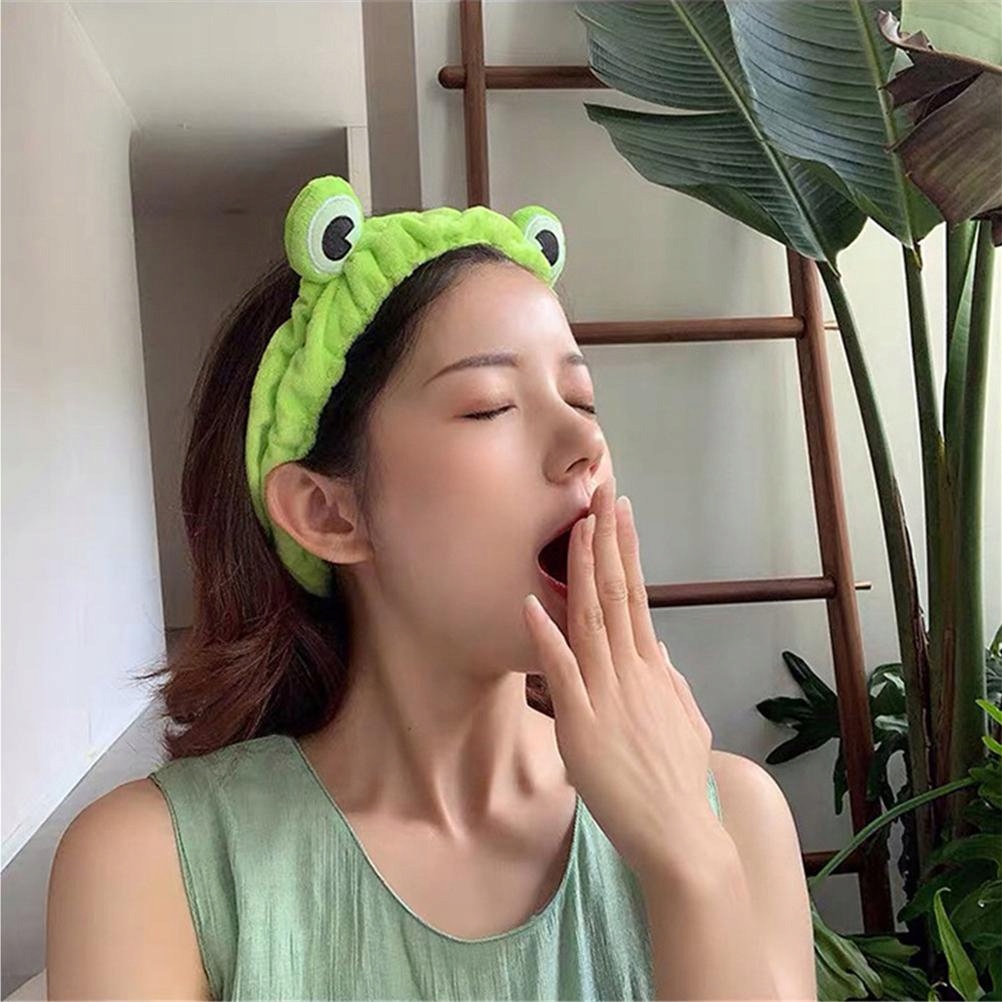 Женские аксессуары для волос для домашних животных, повязка на голову для макияжа в виде лягушки, широкие закругленные эластичные ленты для мытья волос
