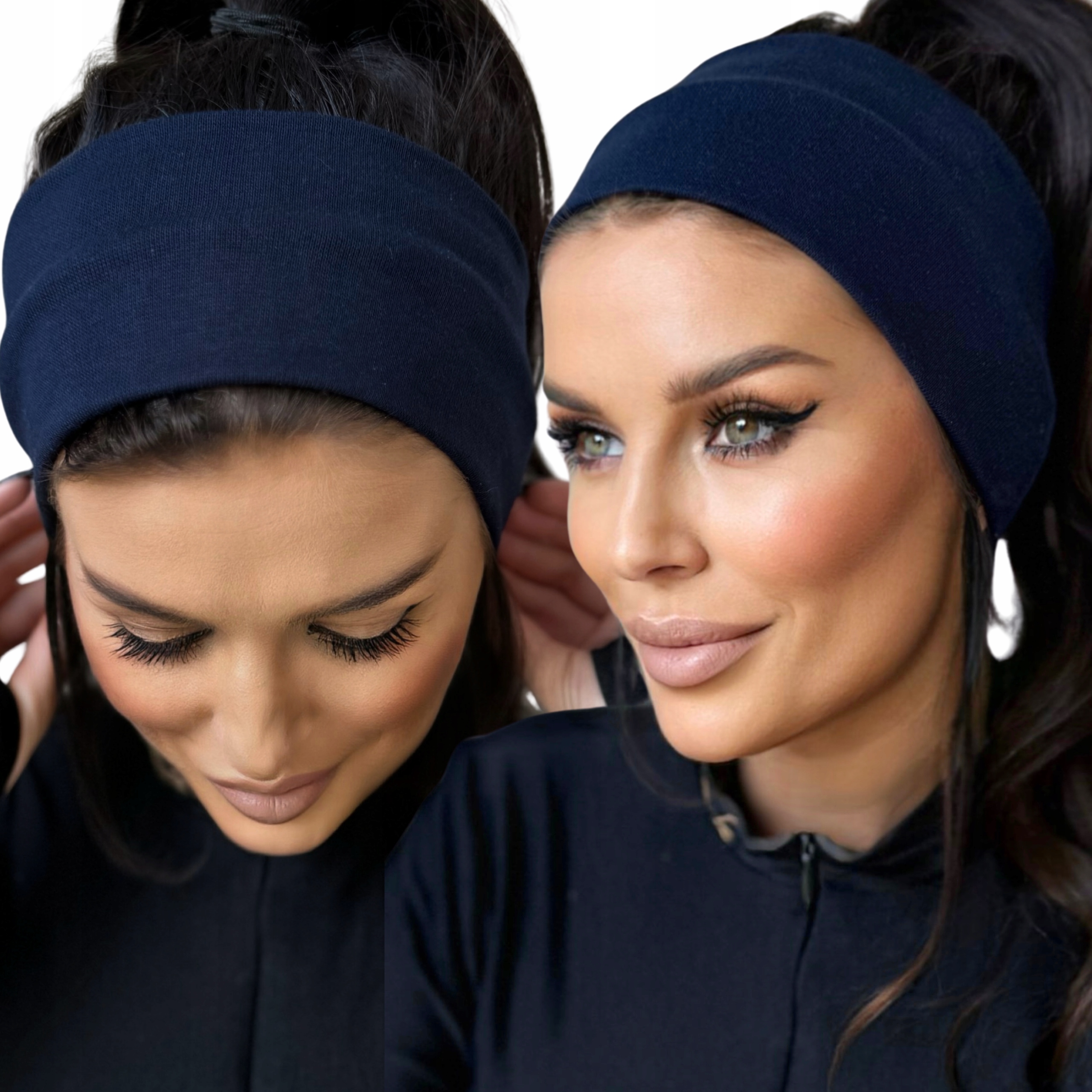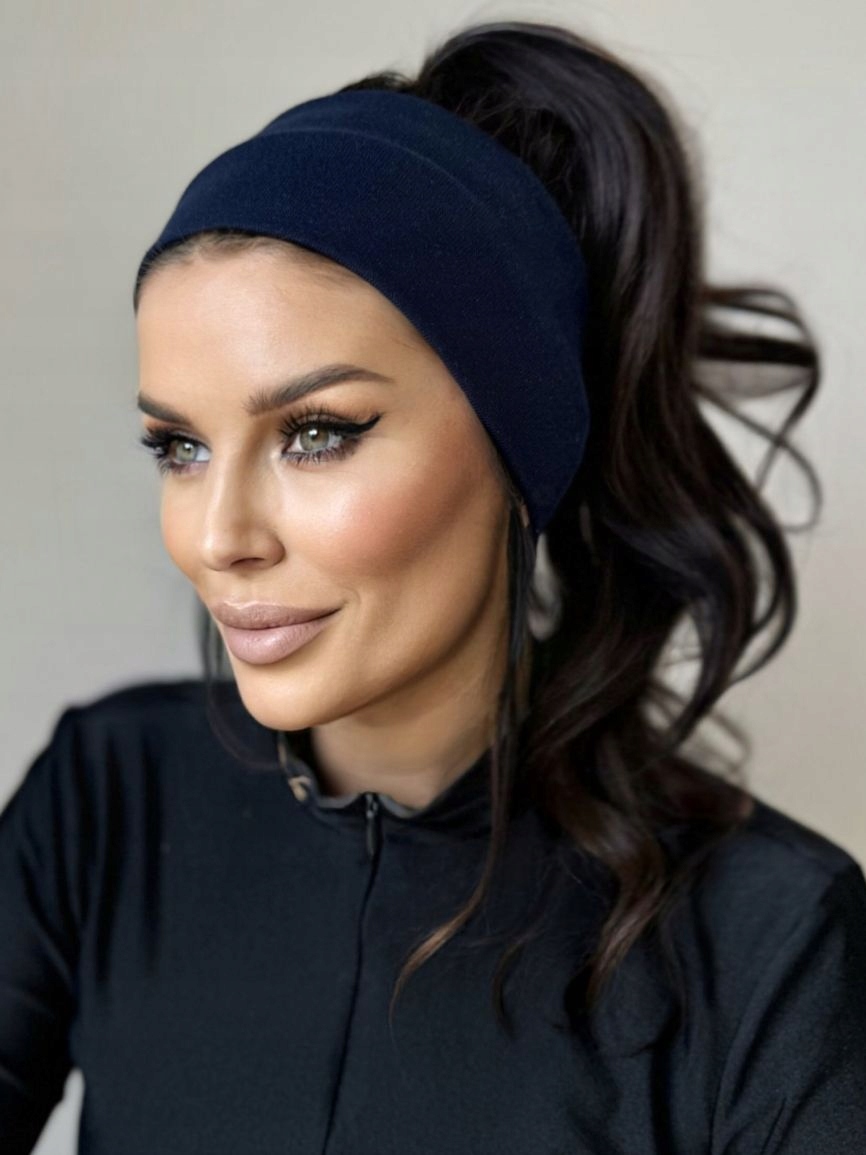 ПОВЯЗКА НА ГОЛОВЬ ЖЕНСКАЯ, ТОНКАЯ, ЛЕГКАЯ, УДОБНАЯ, ПРОСТАЯ, ШИРОКАЯ ХЛОПКА, ТЕМНО-СИНЯЯ.