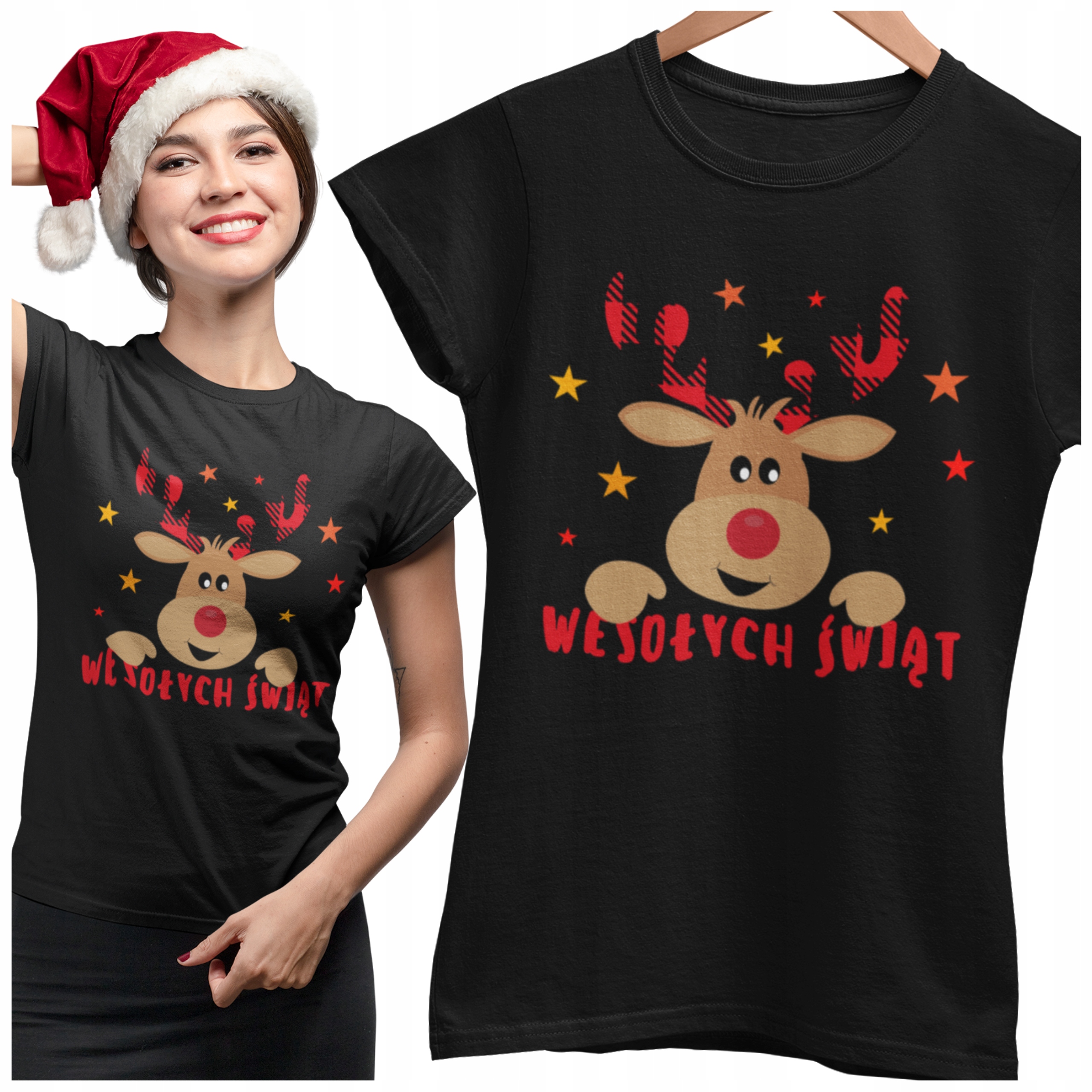 ЖЕНСКАЯ РОЖДЕСТВЕНСКАЯ ФУТБОЛКА Merry Christmas SANTA CLAUS REINDER PREMIUM