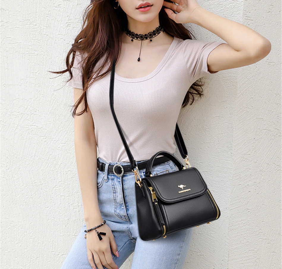 Жіноча шкіряна сумочка, чорна, елегантна, містка сумка через плече, ЯКІСТЬ