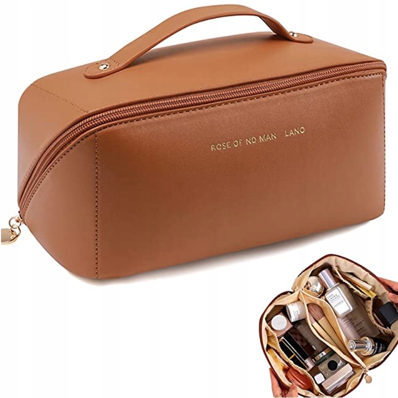 После расстегивания молнии косметичка разворачивается таким образом, что видно сразу все содержимое косметички.
