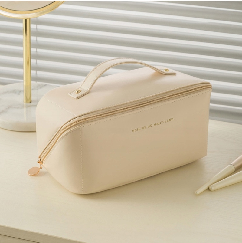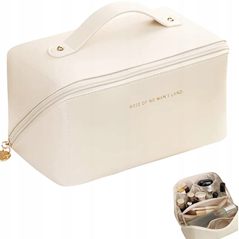 После расстегивания молнии косметичка разворачивается таким образом, что видно сразу все содержимое косметички.