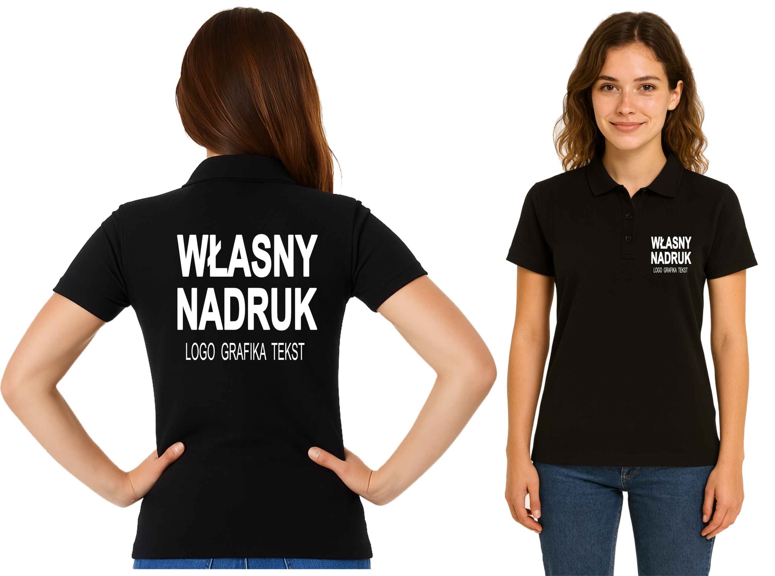 Женская рубашка-поло с собственным принтом – маленькая спереди, большая сзади