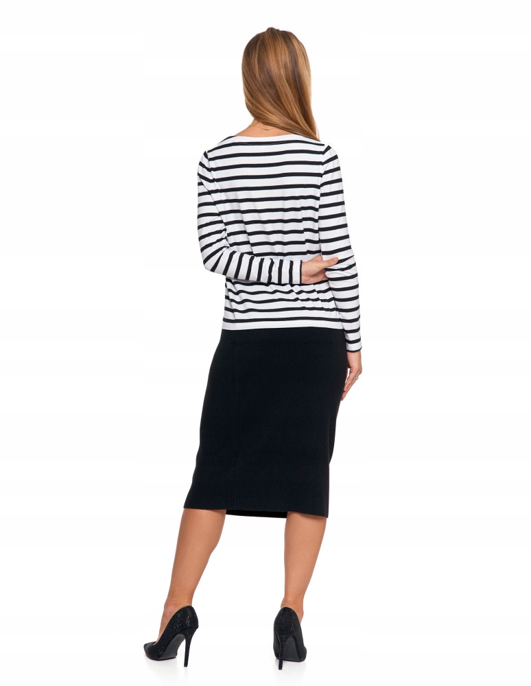 Выполнена из эластичной, ребристой ткани, обеспечивает идеальную посадку по фигуре, подчеркивая женственные формы.