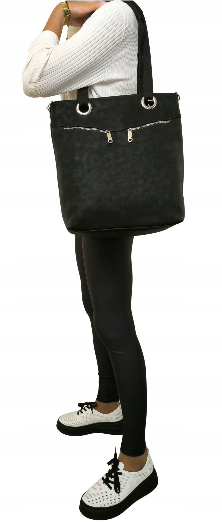 СУМКА-ШОППЕР ЖЕНСКАЯ, ЧЕРНАЯ / ЭКО НУБУК