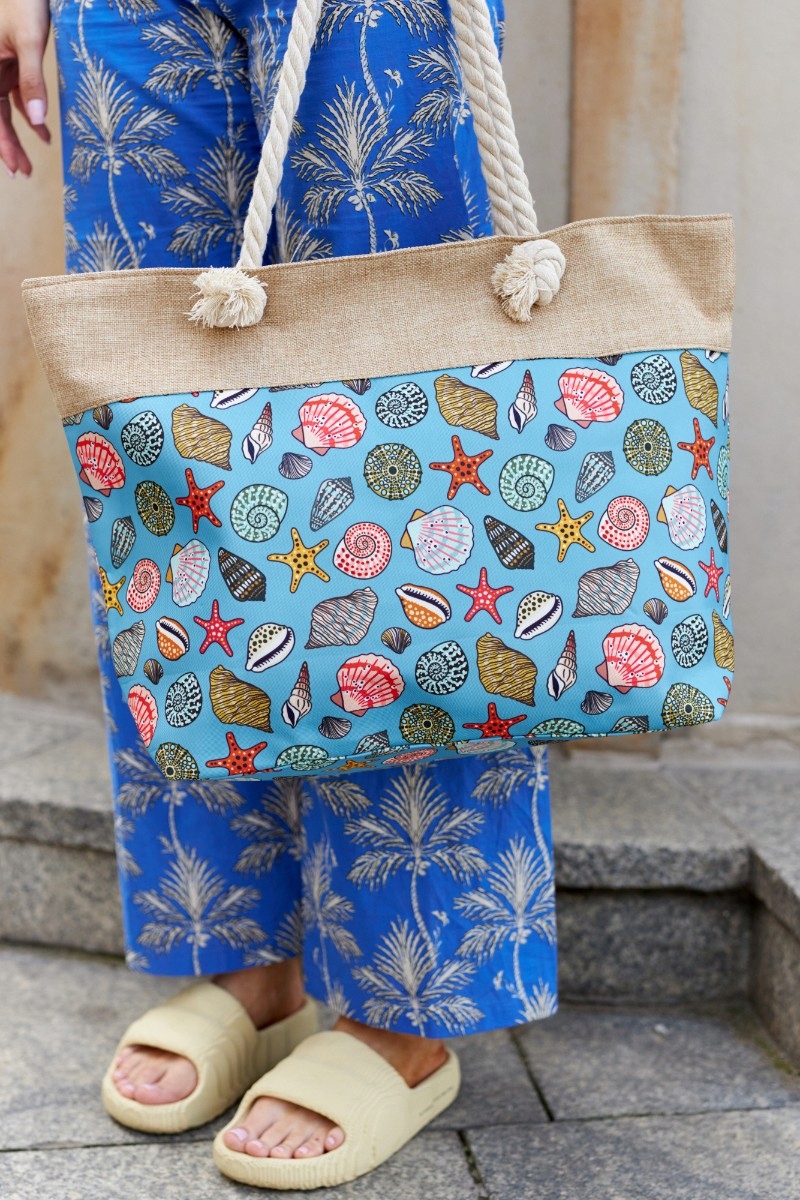#⃣ Модный и функциональный | сумка закрылась сверху с твердой молнией. Зашит из высококачественного материала, на котором есть красивый, положительный морской мотив с раковинами и морскими звездами ❤ Он дополнен несколькими песчаными материалами сверху