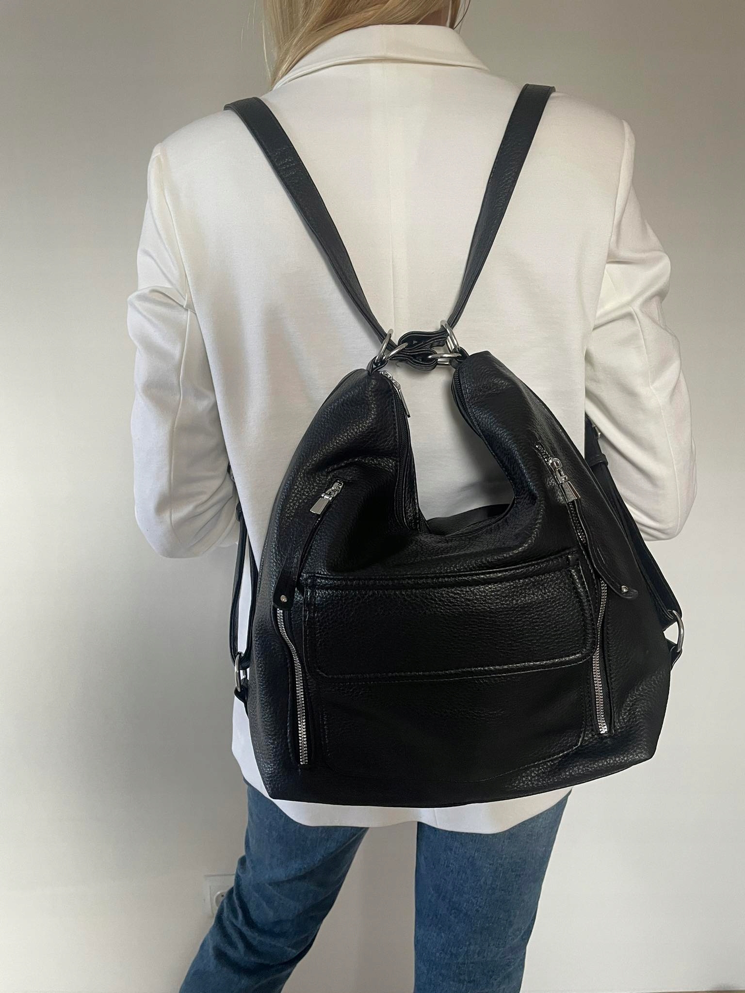 Жіноча сумочка, РЮКЗАК, ЧОРНА шкіра