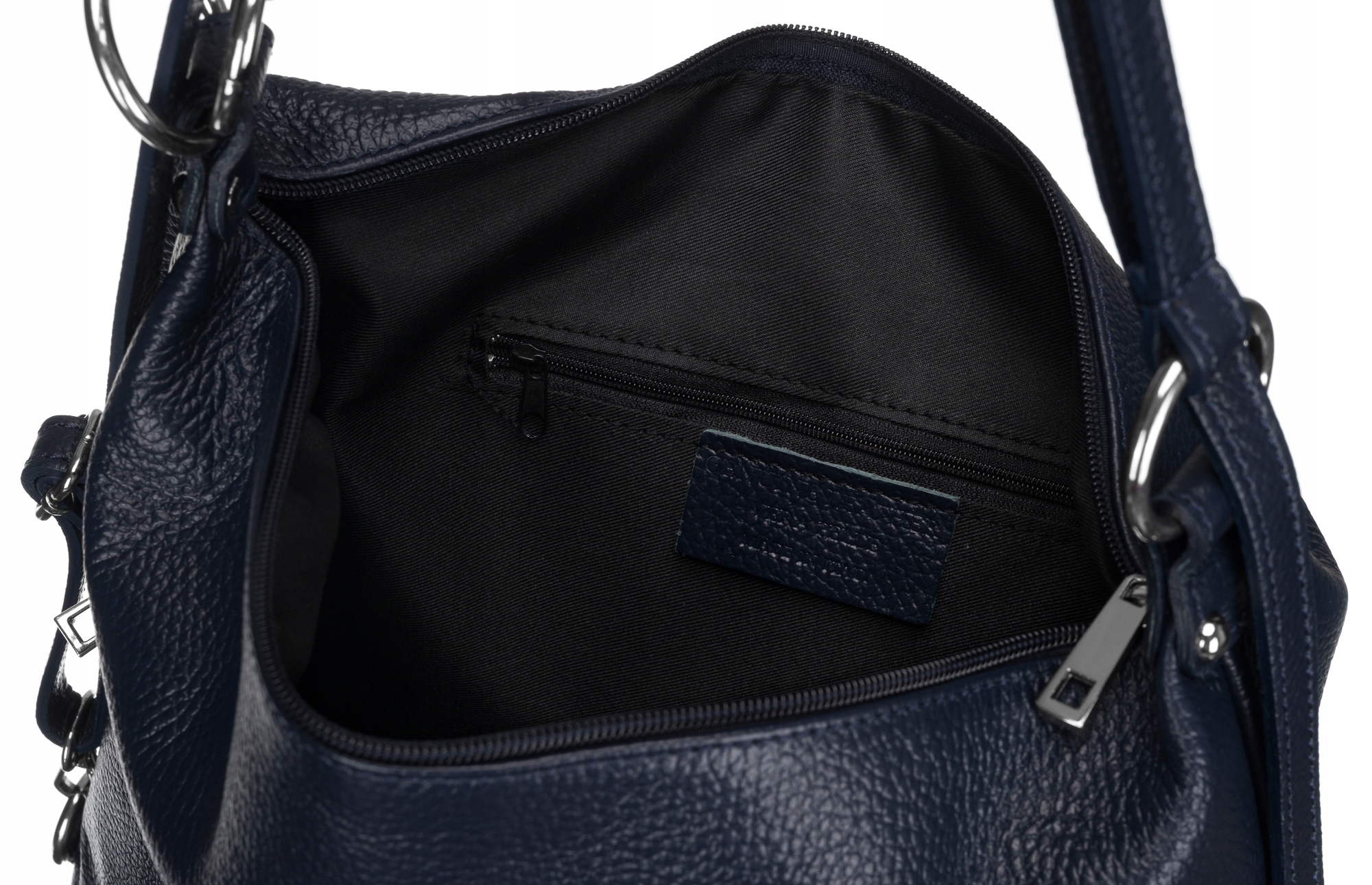 Рюкзак чрезвычайно функционален, имеет множество карманов и отделений. Это практичный аксессуар, созданный для организованных женщин, ценящих функциональность и элегантность. Ее практичность подтверждается тем, что ее можно носить тремя способами: она оснащена съемными длинными регулируемыми кожаными ремнями. Изменения вносим очень просто – прикрепляя карабины, которыми заканчиваются лямки, в соответствующие места.