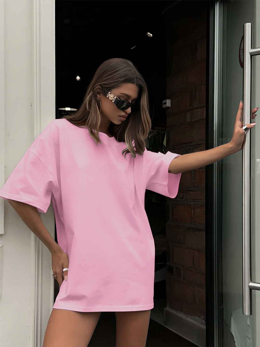 Женская T -мала негабаритная длинное большое свободное розовое короткое платье xxl