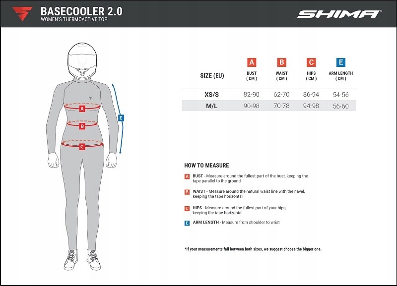 Чтобы правильно определить точный размер, мы измеряем близко к тело. Измерительная лента не должна быть тугой. При измерении лучше всего надеть легкую, хорошо сидящую одежду и стоять в свободном, но вертикальном положении. Чтобы измерение было более точным, воспользуйтесь помощью другого человека. Если измеренные значения находятся в пределах разных размеров – всегда выбирайте больший размер.