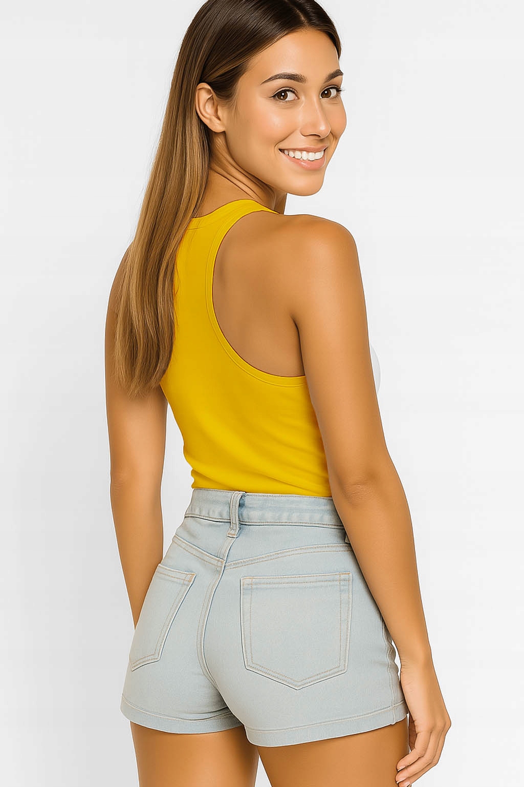 ФУТБОЛКА ЖЕНСКАЯ ТОП-БОКСЕР ПРЕМИУМ, ХЛОПОК, ЖЕЛТЫЙ, XS