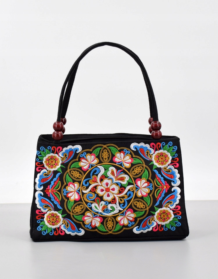 вышитая сумка с деревянными шариками - красочная энергия этнического стиля zenara