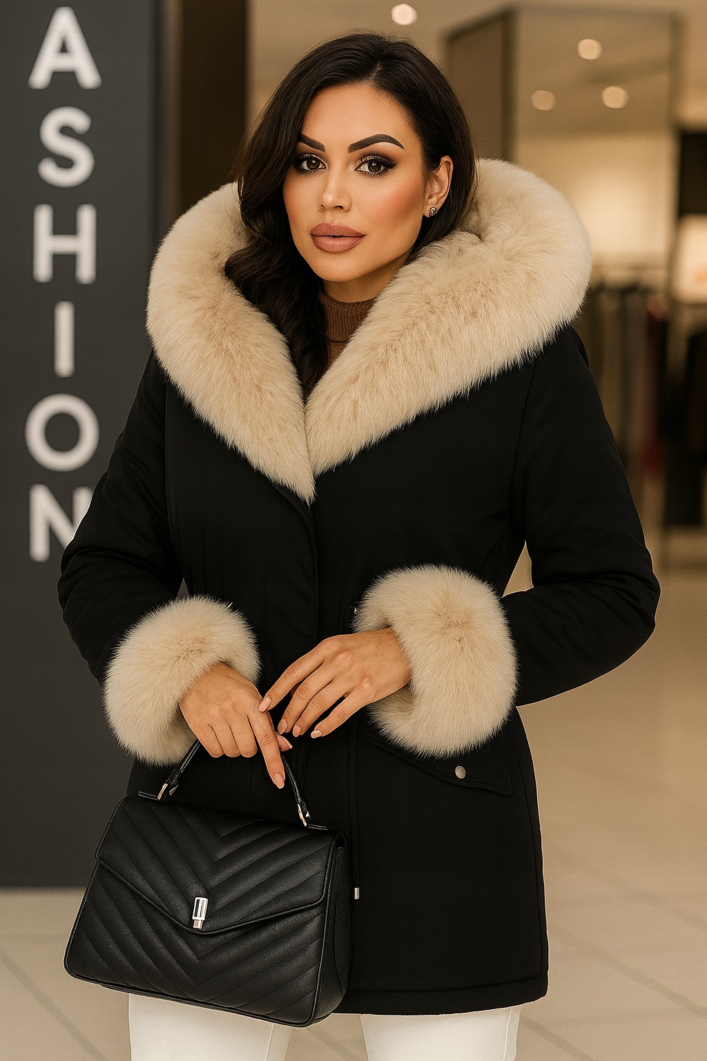 КУРТКА ЖЕНСКАЯ ЗИМНЯЯ, ПАРКА С МЕХОМ, ЧЕРНАЯ, УТЕПЛЕННАЯ, МЕХ S