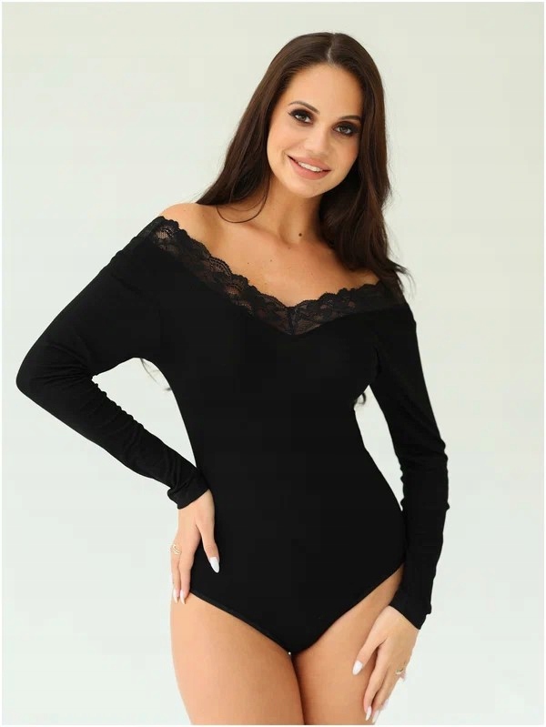 ЖІНОЧЕ БОДИ З ДОВГИМ РУКАВОМ, РОЗМІР XL, чорний, З МЕРЕЖИВОМ