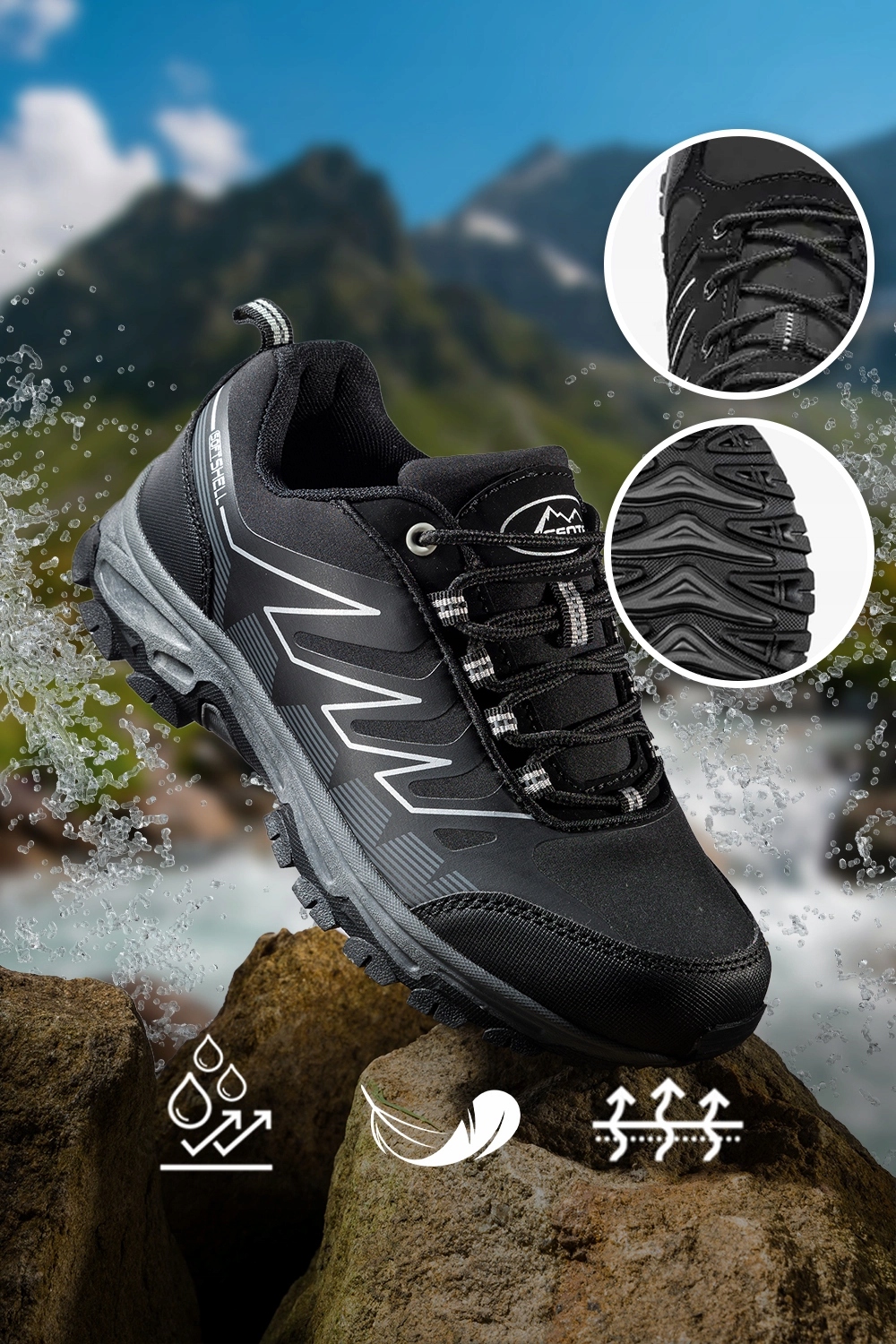 Black Women's Trekking Shoes B2113-1 изготовлены из высококачественных материалов, которые гарантируют отличное качество и подходят к ноге. Softshell обувь - это легкая, удобная спортивная обувь из современных и прочных материалов. Невозможно для прогулки, для бега или для поездок на гор. Эта обувь идеально подходит для активных женщин, которые любят проводить время в груди природы, а также любителей горных поездок. Верхняя часть изготовлена из воздухопроницаемого материала из мягкой кости, который также обладает водонепроницаемыми свойствами. Интерьер обуви вокруг пятки и куба заполнен мягкой пеной, а сетчатая подкладка улучшает вентиляцию стопы и гигиену. Резиновая подошва -легкая, гибкая и не складка, отделанная канавками, благодаря этой обуви устойчиво к любой неровности поверхности. Смягчение свойств обуви помогает поддерживать стабильность, адгезию и высокий комфорт во время интенсивного использования. Округлый кончик обуви обеспечивает дополнительную защиту для пальцев, сводя к минимуму риск травм при прохождении сложной области. Это решение будет особенно оценено людьми, которые часто бродят по каменным тропам. Кружевая застежка позволяет вам идеально сочетать обувь к ноге, что увеличивает комфорт и стабильность. Шнушки долговечны и устойчивы к истиранию, что обеспечивает долгосрочное использование. Удобные и стабильные туфли для треккинга необходимы, чтобы полностью наслаждаться каждой поездкой в грудь природы. Они великолепны во время горных экспедиций и лесных поездок. У них низкий верхний верхней части лодыжки. Серые аксессуары - идеальный способ добавить тонкость и щепотку очарования. Прочный дизайн делает эту модель многосезонной обувью, которая работает в любое время года.
