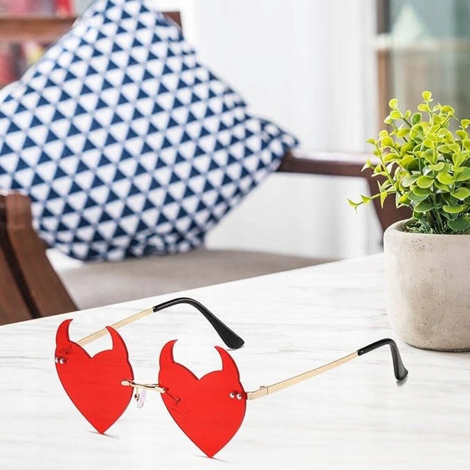 - Солнцезащитные очки, без кадров, в форме сердца с рогами дьявола,