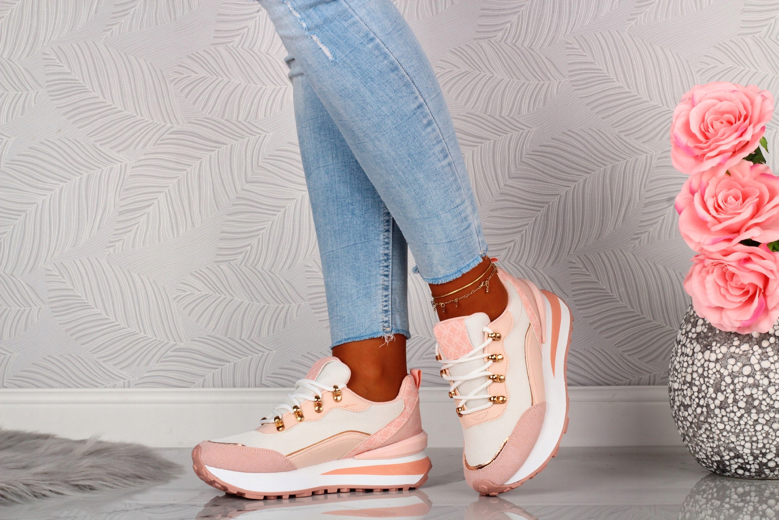 Розовые женские туфли на шнуровке. Изготовлен из материалов хорошего качества. Они идеальны в качестве повседневной обуви. Они обеспечивают удобство и комфорт использования. Поднятая, устойчивая подошва хорошо амортизирует ногу.