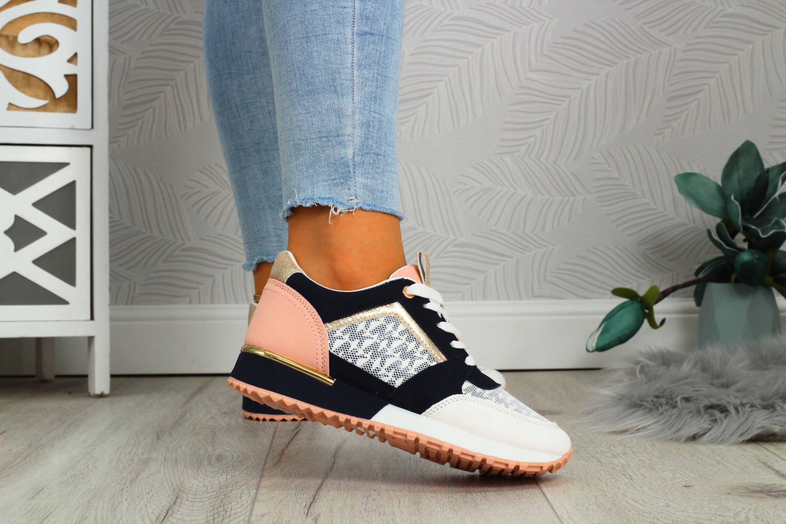 Разноцветные женские спортивные туфли на шнуровке с декоративными сетчатыми элементами. Изготовлен из материалов хорошего качества. Они подойдут как повседневная, так и спортивная обувь. Они легкие и обеспечивают удобство и комфорт использования. Поднятая устойчивая подошва хорошо амортизирует ногу.