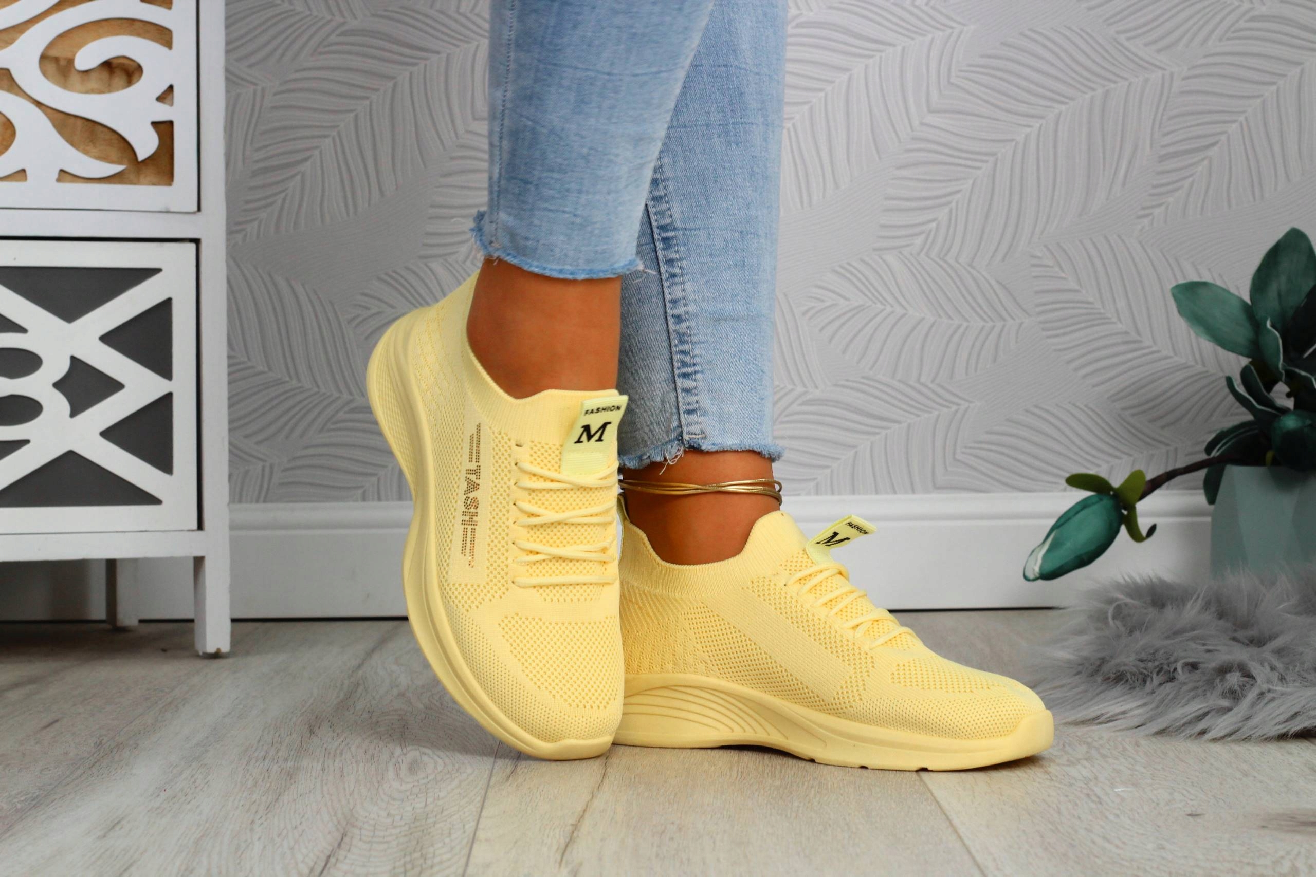 Женские спортивные слипоны желтого цвета из воздушной сетки. Изготовлен из материалов хорошего качества. Они подойдут как повседневная, так и спортивная обувь. Они легкие и обеспечивают удобство и комфорт использования. Подошва устойчивая и хорошо амортизирует ногу. Ребристая отделка, эластичный материал.