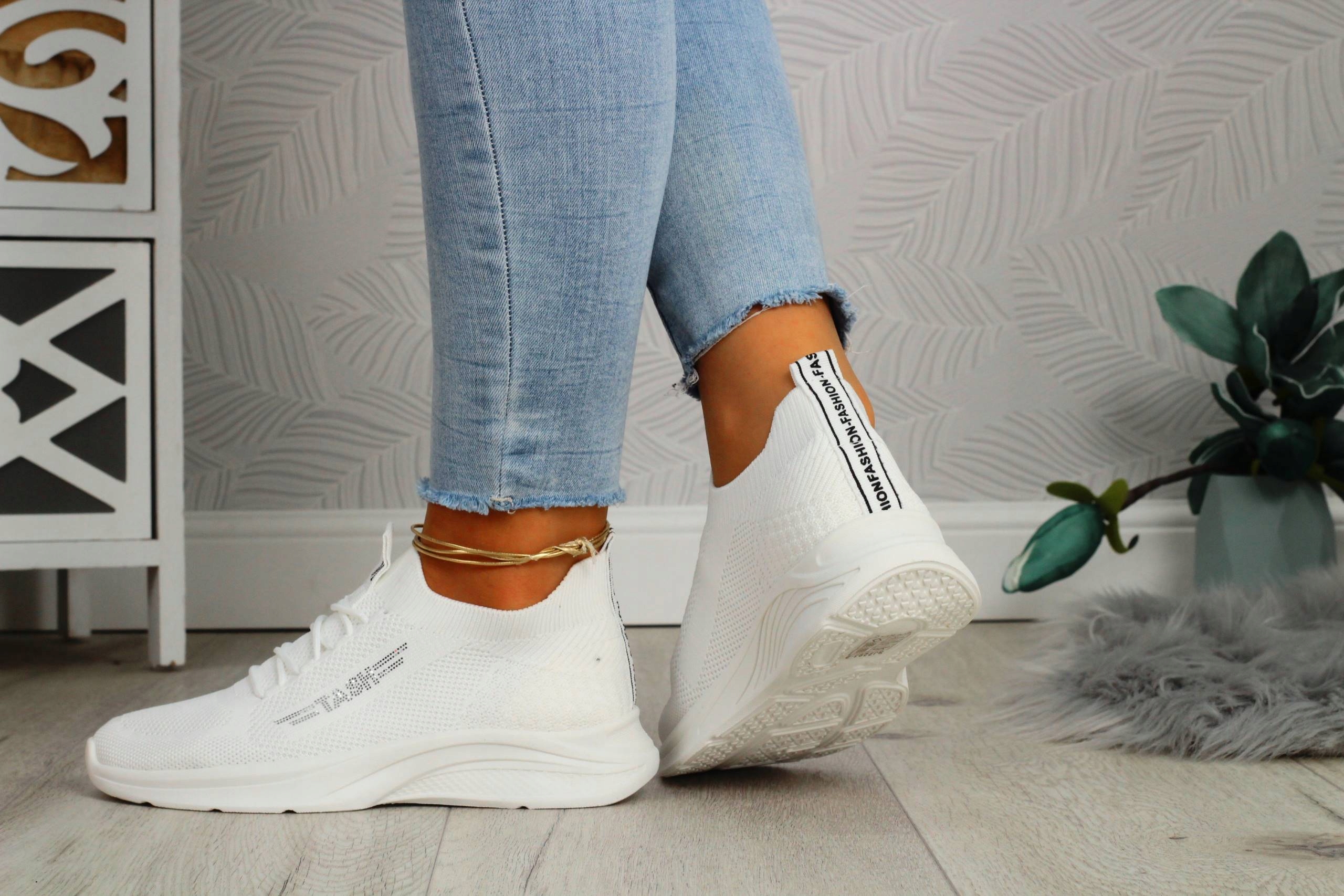 Женские белые спортивные туфли без шнурков с воздушной сеткой. Изготовлен из материалов хорошего качества. Они подойдут как повседневная, так и спортивная обувь. Они легкие и обеспечивают удобство и комфорт использования. Подошва устойчивая и хорошо амортизирует ногу. Ребристая отделка, эластичный материал.