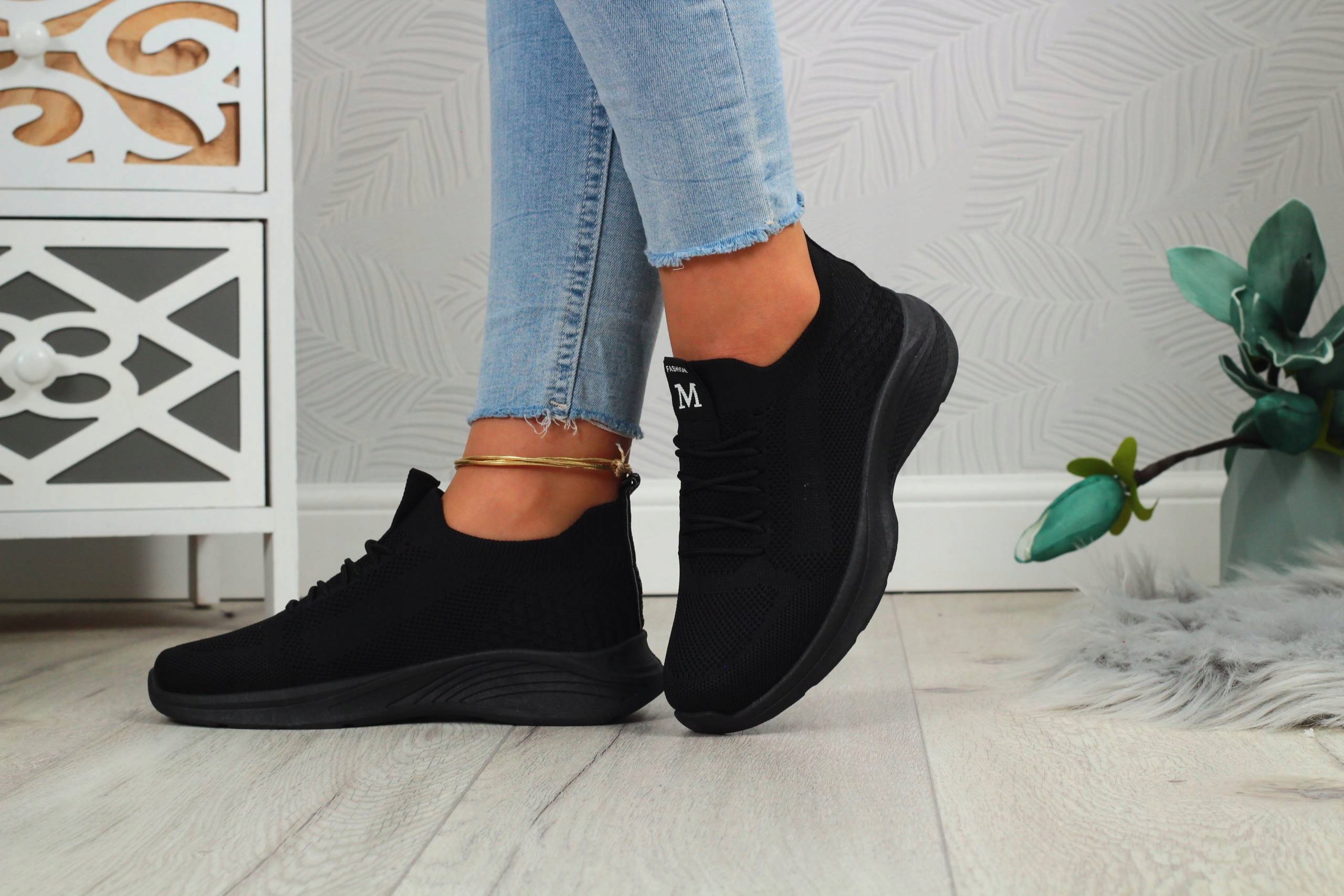 Женские черные спортивные туфли без шнуровки с воздушной сеткой. Изготовлен из материалов хорошего качества. Они подойдут как повседневная, так и спортивная обувь. Они легкие и обеспечивают удобство и комфорт использования. Подошва устойчивая и хорошо амортизирует ногу. Ребристая отделка, эластичный материал.