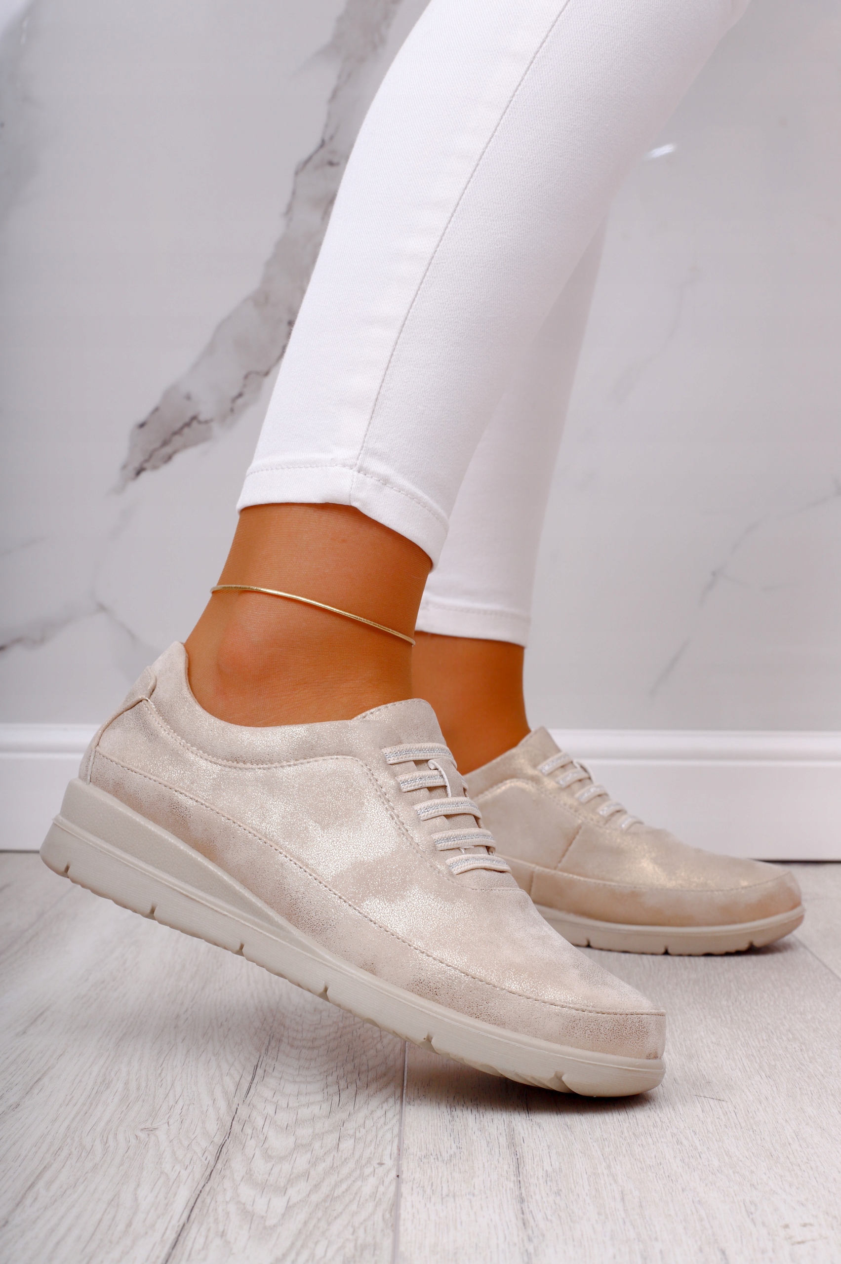 Женская бежевая спортивная обувь. Они будут работать как повседневная или рабочая обувь. Модель скольжения, для гибких резиновых полос облегчает поставку обуви. Сделано из материалов хорошего качества. Удобная, мягкая вставка обеспечивает комфорт. Простой вырез легко адаптируется ко многим стилям. Сшитая подошва увеличивает прочность обуви.