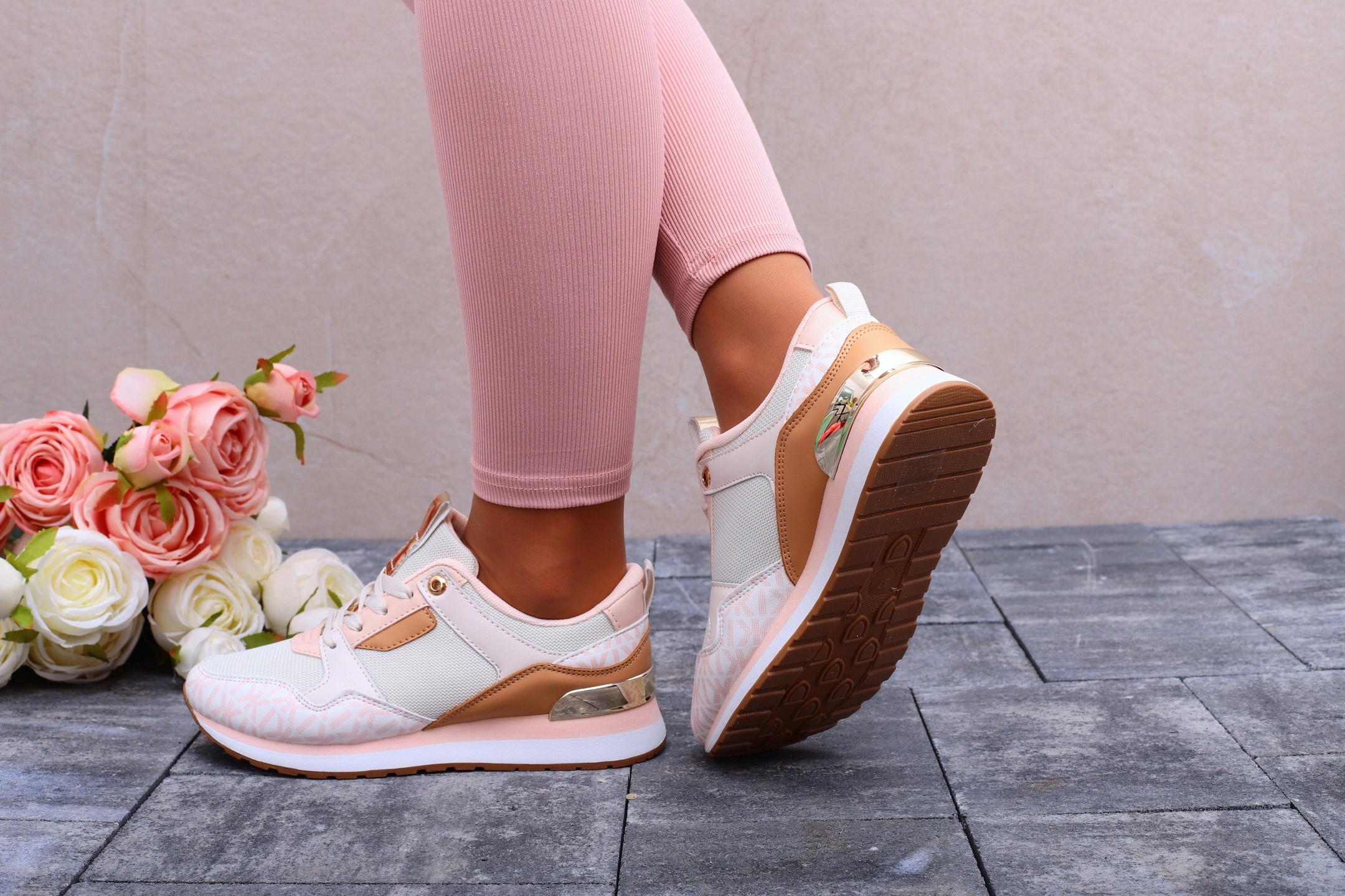 Бежевые и розовые женские спортивные туфли на шнуровке с декоративными сетчатыми элементами. Изготовлен из материалов хорошего качества. Они подойдут как повседневная, так и спортивная обувь. Они идеально подходят для занятий в тренажерном зале и бега. Они легкие и обеспечивают удобство и комфорт использования. Поднятая устойчивая подошва хорошо амортизирует ногу. Приглушенные цвета легко сочетаются со многими стилями.