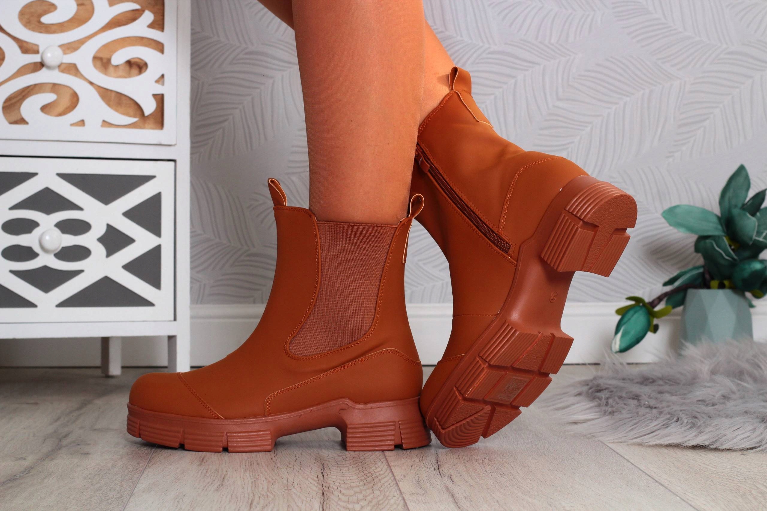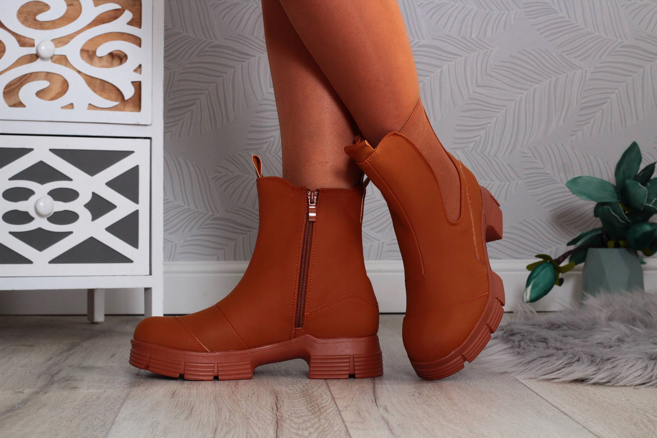 Гладкие женские ботильоны верблюжьего цвета с резиновой вставкой. ? Идеально подходит для осени или весны. Застегивается на молнию. Устойчивая подошва, хорошо амортизирующая стопу. Последняя коллекция 2022 года!