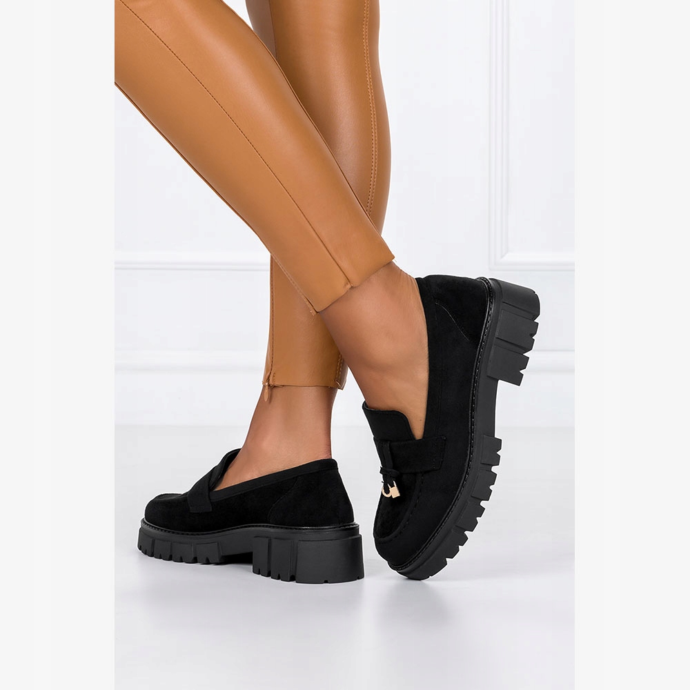 Черные женские мокасины модели G23X7-B изготовлены из высококачественной замши из экологической кожи, что гарантирует отличное качество, комфорт и прилегание к ноге. Это элегантная и стильная обувь, которую можно носить в самых разных случаях. Они имеют плоскую рифленую подошву, обеспечивающую хорошее сцепление, комфорт и устойчивость при ходьбе. Их главная отличительная особенность – тонкий и эффектный декор, размещенный на передней части верха, который придает обуви неповторимый шарм и элегантность. Их можно носить как с формальной, так и с неформальной одеждой. Они прекрасно сочетаются с брюками, как классическими, так и с джинсами, а также платьями и юбками. Они станут отличным дополнением вашего гардероба, ведь черный цвет универсален и легко сочетается с другими элементами наряда. Если вы ищете стильную и удобную обувь, обратите внимание на предложение Casu