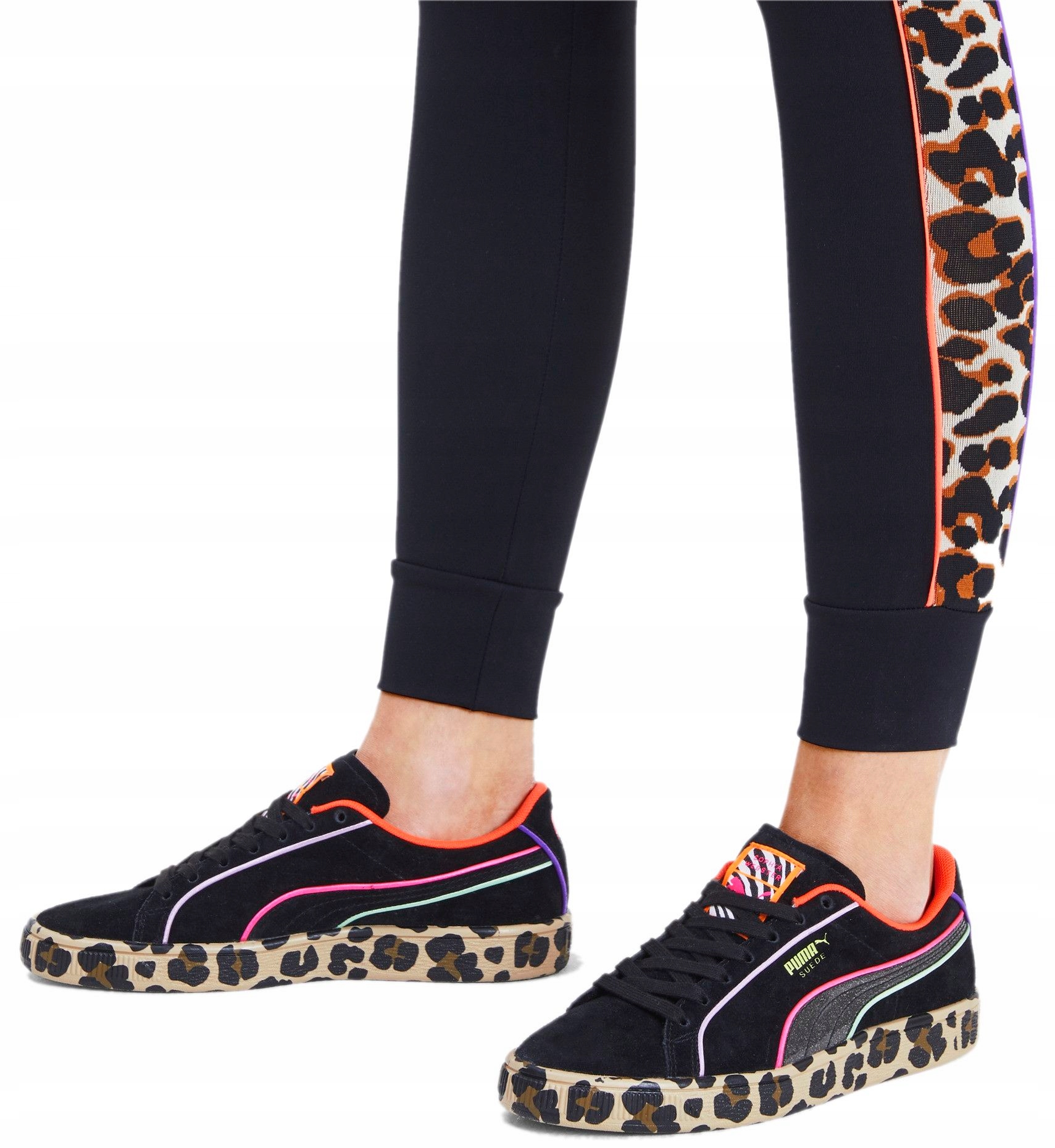 Популярность британского дизайнера Софии Вебстер продолжает набирать обороты. Новая коллекция PUMA x SOPHIA WEBSTER призвана покорять городские джунгли: культовые силуэты PUMA, множество цветов, звонкий металл, анималистические принты. Замшевые кроссовки Sophia Webster демонстрируют творческий подход Софии: неоновые светоотражатели, леопардовая подошва и полоски под зебру на язычке прекрасно дополняют друг друга.