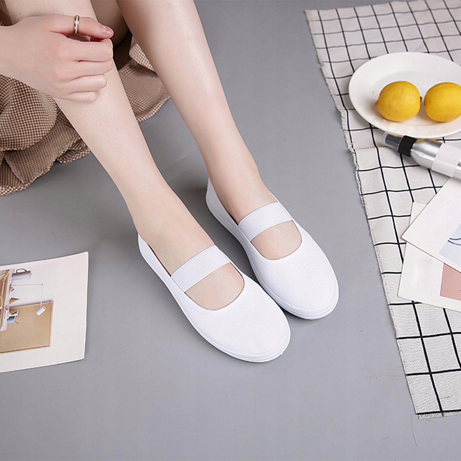 Женские плоские балетные туфли белый холст 37