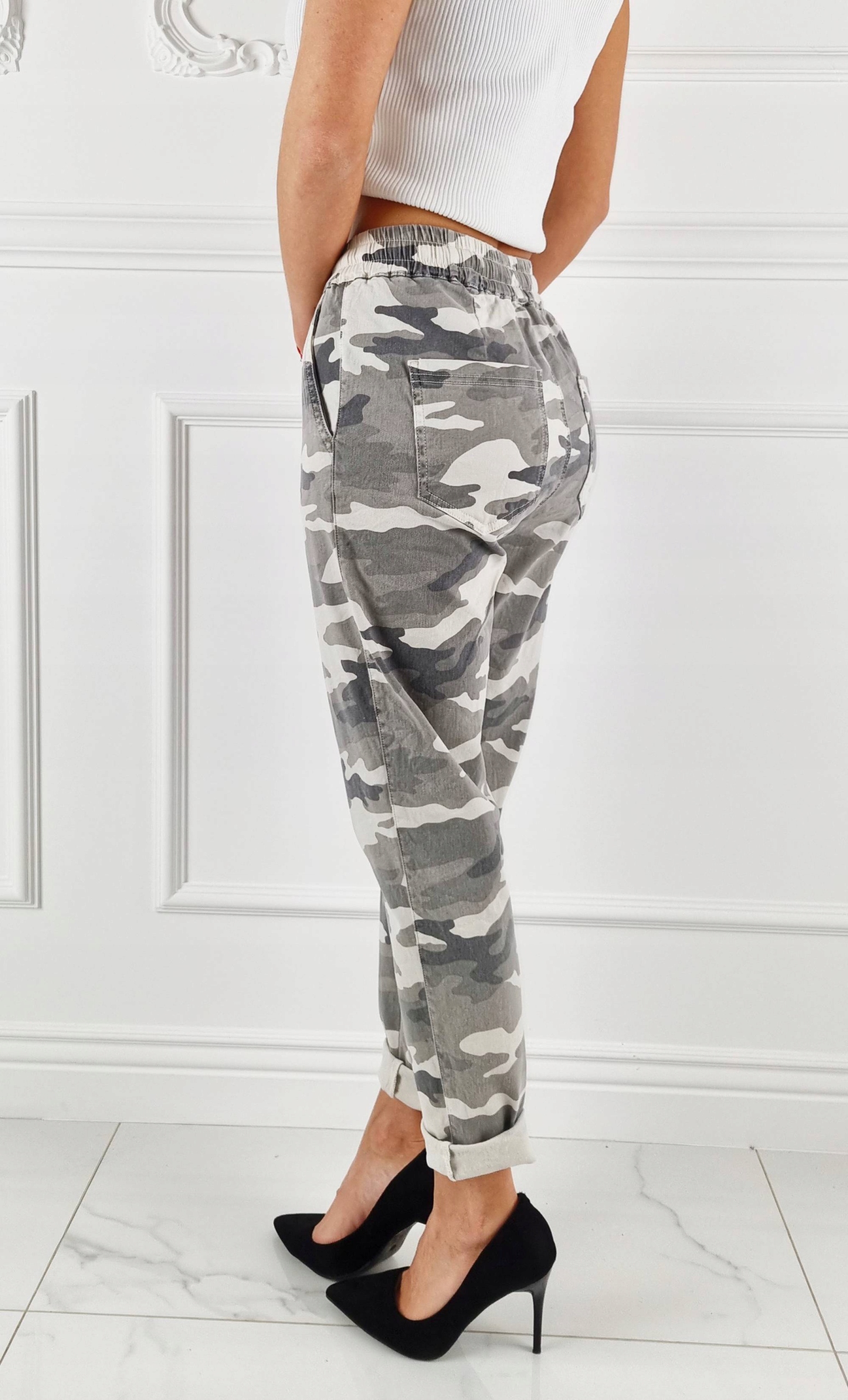 Камуфляжные брюки отлично подходят для спортивной обуви, но также отлично подойдут и для сочетание с обувью на высоком каблуке, благодаря своей универсальности, подойдет практически к любому стилю. Гибкий материал подчеркивает женскую фигуру. Брюки приталенные и тянутся. Подчеркните свои женственные формы! Сделайте свой повседневный образ уникальным. Брюки имеют карманы с обеих сторон.