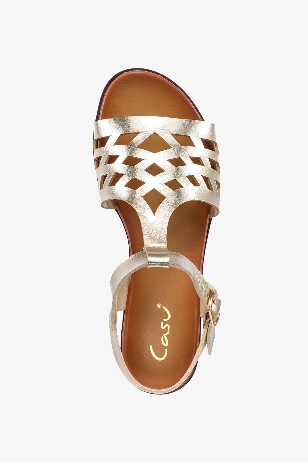 Женские золотистые босоножки модели К24Х17-Г изготовлены из высококачественной экологической кожи, что гарантирует отличное качество и плотное прилегание к ноге. Блестящие золотые босоножки с ажурным узором – классика в современной интерпретации! Это эксклюзивная коллекция босоножек на плоской подошве, которые радуют не только своим блеском, но и тонким ажурным узором. Они созданы для женщин, которые ценят элегантность в сочетании с комфортом. Плоская подошва гарантирует комфорт в течение дня, независимо от того, проводите ли вы время на прогулке или в офисе. Каждая деталь обработана с невероятной точностью. Застежка-пряжка добавляет шарма и в то же время позволяет сандалиям идеально облегать ногу. Выбрав эту модель, вы можете быть уверены, что ваши ноги будут окружены роскошью на каждом шагу. Блестящая золотая отделка привлекает внимание и делает их идеальным дополнением к летнему наряду. Они оживят любую укладку и добавят ей нотку гламура. Выбирая золотые сандалии, вы инвестируете в товар, который прослужит вам много сезонов. Благодаря универсальному дизайну они подойдут ко многим стилям, как повседневным, так и более формальным. Сделайте каждый шаг полным блеска и элегантности.