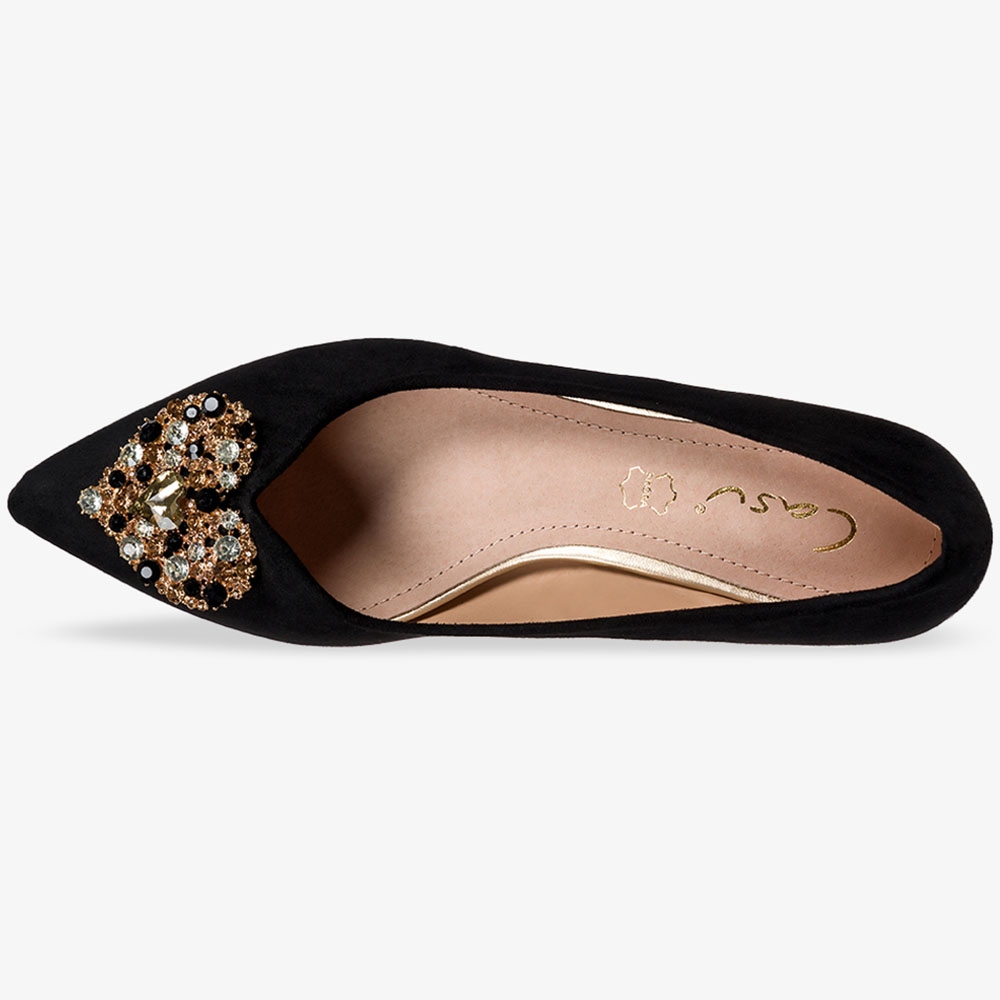 Черные женские балетки модели ER23WX1-B изготовлены из высококачественной экологической замши, что гарантирует отличное качество и плотное прилегание к ноге. Эта обувь сочетает в себе стиль и комфорт, что делает ее популярным выбором для многих женщин. Кожаная стелька является дополнительным преимуществом, поскольку обеспечивает исключительный комфорт при длительном ношении обуви. Характерный элемент этой балерины – украшение в форме сердца с кристаллами, размещенное на носке туфельки. Это деликатная деталь, которая добавляет очарования и романтики. Их можно носить как с повседневными, повседневными нарядами, так и для более официальных случаев, например, вечеринок или деловых встреч. Они сочетаются как с юбками и платьями, так и с брюками, добавляя им легкости и женственного шарма. Балетки, доступные в Casu, — это неподвластная времени, утонченная обувь, которая балует женщин множеством возможностей для создания образа.