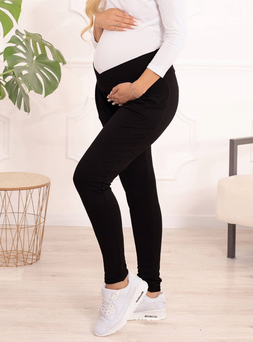 Модный классический черный цвет придает брюкам чрезвычайно оригинальный вид и станет идеальной основой для многих повседневных образов. . Смешивайте цвета и наслаждайтесь модой даже в это необычное время ожидания вашего малыша. Брюки идеально подходят как для повседневного спортивного образа, так и для более элегантных комплектов — сочетайте их с классической белой рубашкой и черными туфлями на высоком каблуке, и вы получите вневременной стиль, который будет хорошо смотреться во многих более формальных ситуациях. Для повседневной носки сочетайте их с ярким свитшотом и спортивной обувью — это идеальный комплект для шопинга, прогулки с друзьями или прогулки. Материал, из которого изготовлены брюки женские для беременных, очень мягкий и нежный на ощупь, снизу имеется петелька.