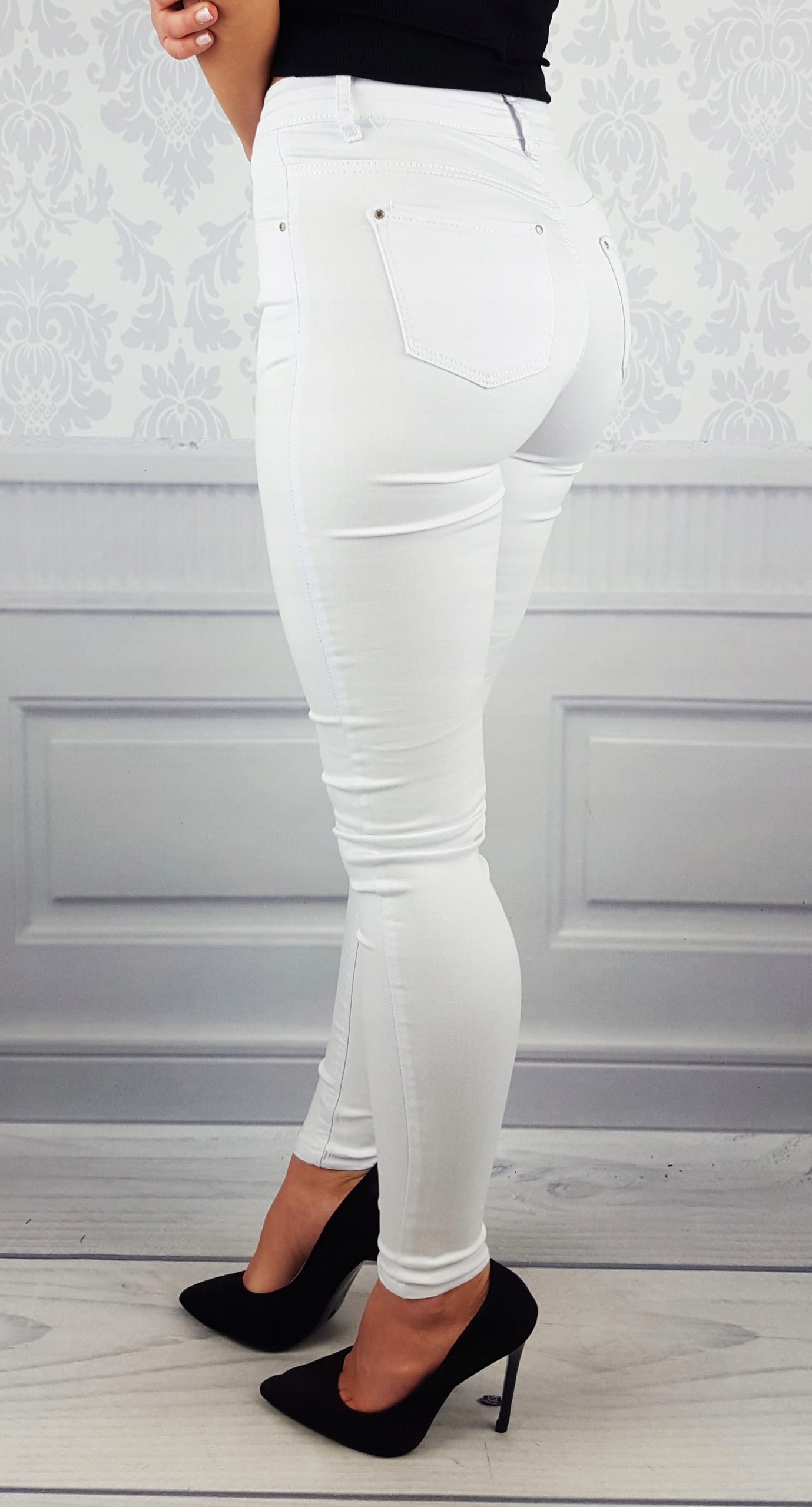 Отличные белые классические штаны, имеют высокое состояние отлично подходит для спортивной обуви, но они также будут отлично работать в сочетании с высокими каблуками, благодаря их универсальности благодаря их универсальности, они также соответствуют каждому стилю. Гибкий материал подчеркивает женскую фигуру. Штаны установлены, растягиваются. Подчеркните свои женские формы! Сделайте свой ежедневный вид уникальным. Брюки с обеих сторон имеют карманы.