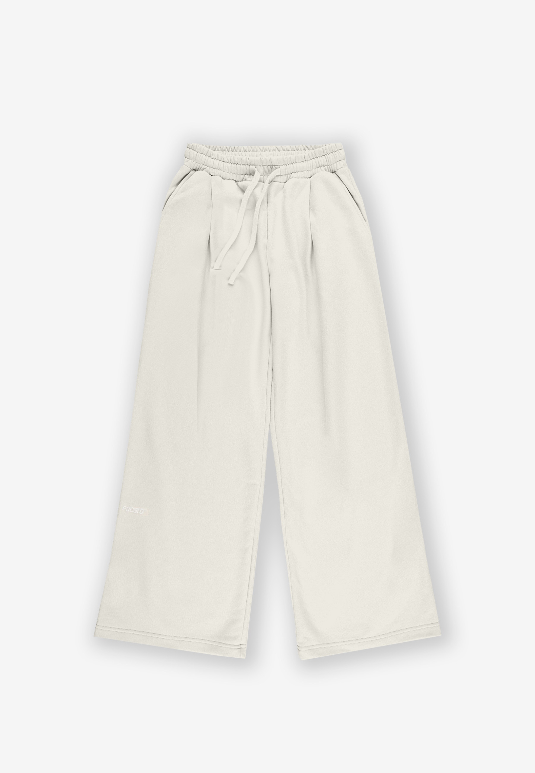 Pants Oversized Off-White – женские спортивные брюки из коллекции Prosto кремового цвета. Они имеют свободный фасон оверсайз с широкими штанинами. В талию вшита широкая резинка с плоской регулируемой завязкой, благодаря которой брюки хорошо сидят и не теряют форму. Изготовлен из плотного петельного хлопка - материал мягкий, прочный и приятный в носке. На штанине вышивка с логотипом «Просто», на спине — водный принт. Идеально подойдет как отдельно, так и в комплекте с худи или круглым вырезом той же линии.